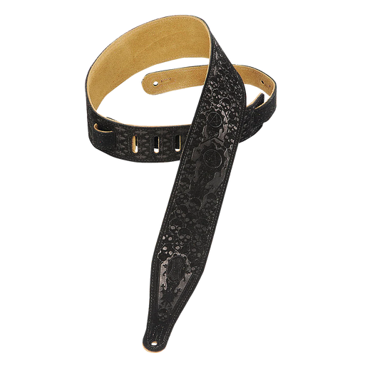 Levy's Embossed Suede Series 2 1/2" Wide Guitar Strap, Black Skulls