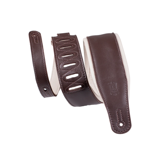 Levy's Staple Series 3" Garment Leather Guitar Strap, Dark Brown & Cream