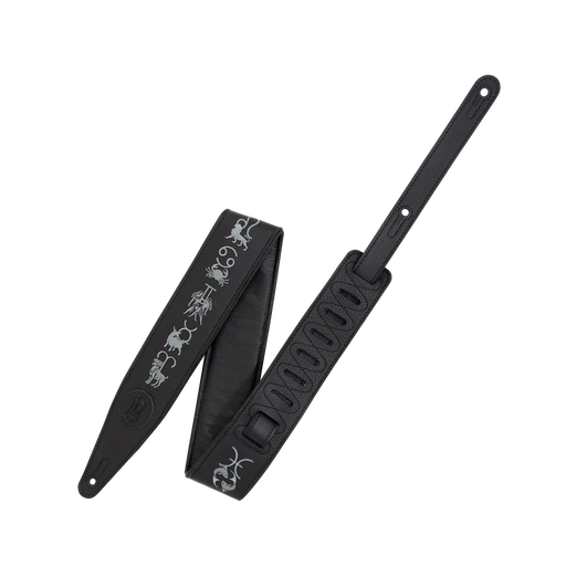 Levy's Calaca Leather Series Calaca Black Leather 25"Strap, Skulls