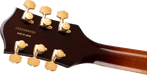 - 12"-radius ebony fingerboard with rolled edges, 22 medium jumbo frets, pearloid Neo-Classic™ thumbnail inlays and Luminlay® side dots
