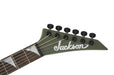 Introducing Jackson, born in 1980 in Southern California, pioneering instruments tailored for hard rock and metal virtuosos. With 40 years of innovation, the Jackson American Series Soloist™ SL2MG HT represents the pinnacle of high-performance guitars. Crafted in Corona, it features an alder body, a stable through-body maple neck, and a compound radius ebony fingerboard with 24 jumbo stainless steel frets for lightning-fast playability. Equipped with EMG® 81 and 85 pickups, it delivers powerful yet clear tones ideal for modern metal. Additional premium features include a Hipshot® hardtail bridge, Gotoh® locking tuners, and Dunlop® locking strap buttons. Available in Satin Black and Matte Army Drab finishes, this instrument embodies Jackson's iconic metal aesthetic.