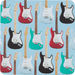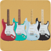 - Set of 4 coasters featuring modern Stratocaster®-inspired designs