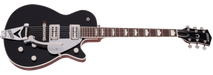 Other features include a set maple neck, 12"-radius rosewood fingerboard with pearloid Hump Block inlays, bone nut, G-arrow knobs, Bigsby® vibrato tailpiece, Adjusto-Matic™ bridge with pinned rosewood base and Gotoh® tuners.