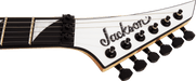 - Available in Gloss Black or Snow White with color matched reverse Jackson pointed 6-in-line headstock and black hardware